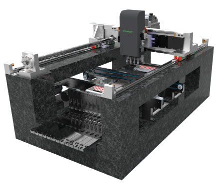 1、貼片機采用花崗巖一體化設(shè)計制造的高精密運動平臺技術(shù)。同時,一體化的結(jié)構(gòu)還具有抗震能力。